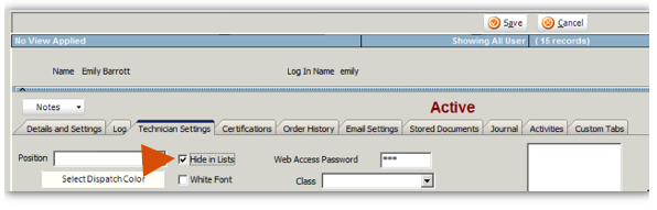 The SME User will no long show on the Dispatch Calendar or in the Labor Editor technician field.