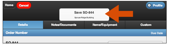 After entering your notes, make sure you click Save at the top. When you see a white “save” box at the top of the order, you will need to click it to save. Once saved, the button will turn yellow.